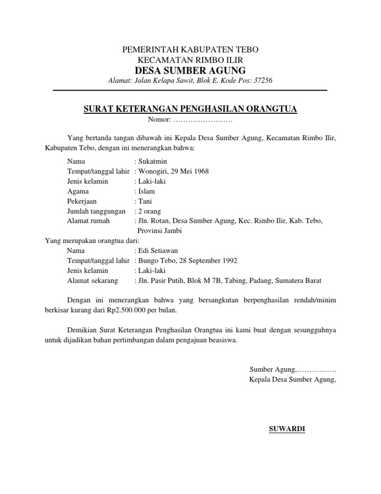 Format surat keterangan penghasilan orang tua dari desa. Maybe you would like to learn more about one of these? Check spelling or type a new query. We did not find results for: