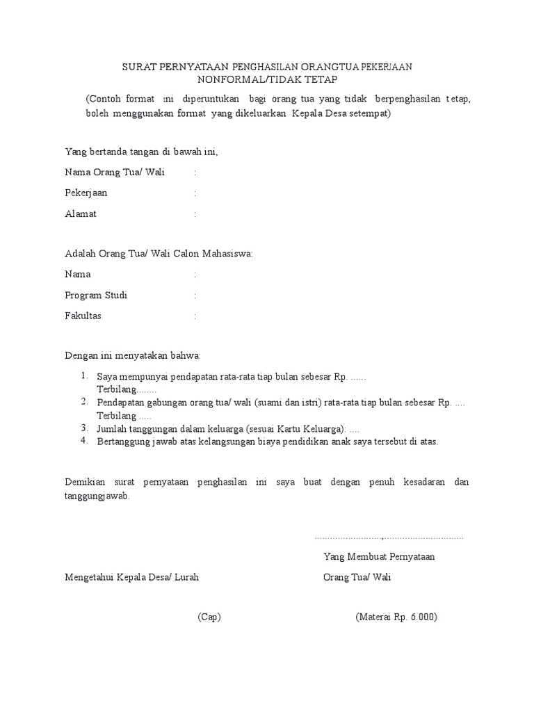 Format surat keterangan penghasilan orang tua dari desa. We did not find results for: Maybe you would like to learn more about one of these? Check spelling or type a new query.